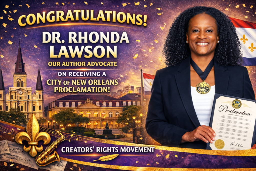Dr. Lawson also serves as the author advocate for the Creators’ Rights Movement, where she works to educate writers about intellectual property ownership, fair publishing practices, and sustainable platform building. Through this role, she continues to champion creative control and professional excellence for authors across genres.